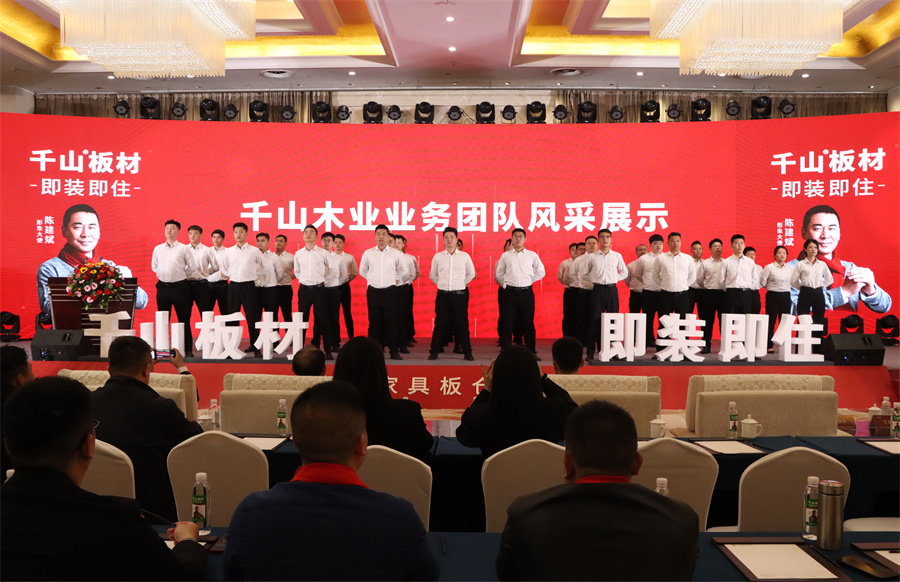 大會總結回顧了千山近年來的突破發展,強調了品牌升級和家具板倉儲兩項發展目標,重點解讀了千山家具板直營倉的發展,并隆重表彰了堅韌逐夢、業績出眾的經銷商大咖,實力開啟千山發展新征程!