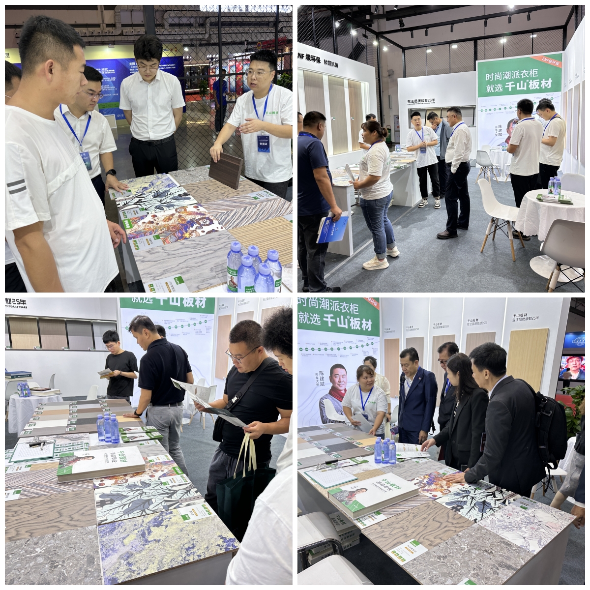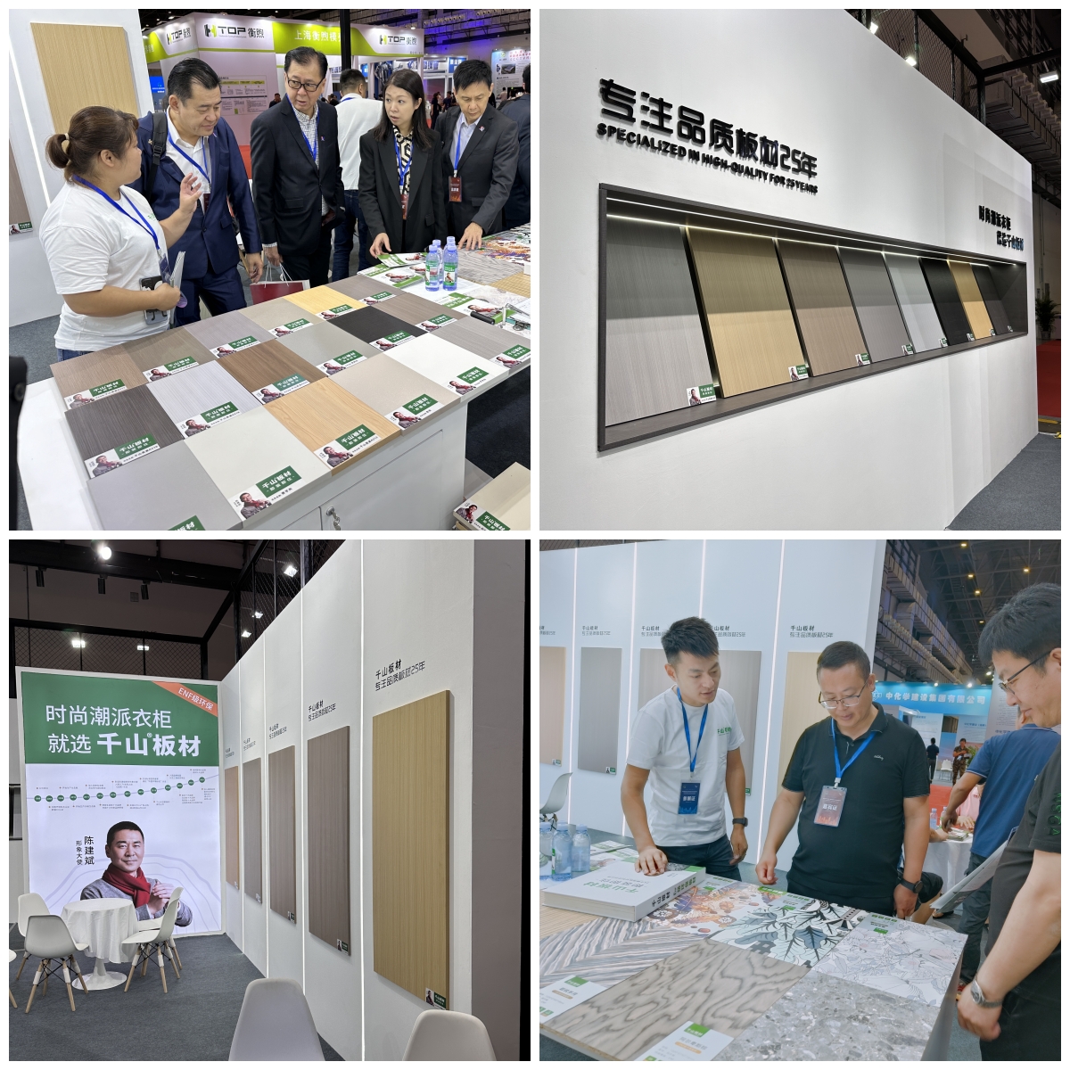為更好的服務(wù)個(gè)性化定制和高端用戶的需求,滿足多樣化的家裝場(chǎng)景,千山在此次展會(huì)現(xiàn)場(chǎng)新推出了19款高定系列板材,表面花色采用數(shù)碼打印,環(huán)保等級(jí)為ENF級(jí),吸引了諸多觀展客戶前來洽談咨詢。