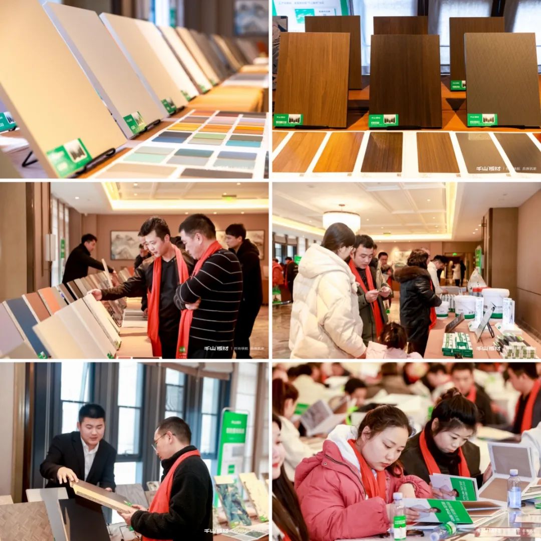 銷售部大區(qū)經(jīng)理王殿忠詳細(xì)介紹了千山板材的產(chǎn)品體系。2024年,千山產(chǎn)品體系已全面升級(jí),涵蓋大實(shí)木刨片板、小實(shí)木刨片板、多層板、實(shí)木板四大品類,擁有木紋、純色、布紋石紋、高定、數(shù)碼、門板6大系列花色,一站式滿足整家定制的需求。