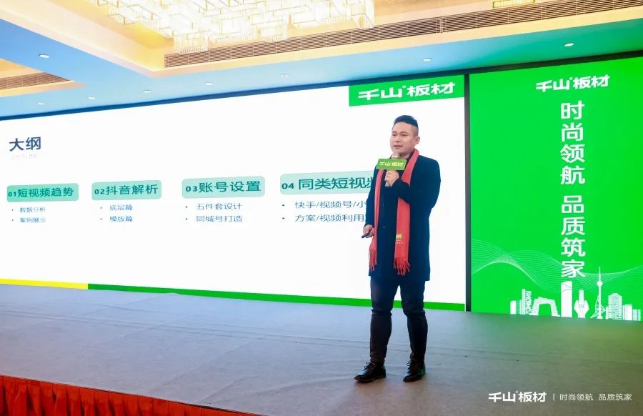 千山板材河南區(qū)域經(jīng)理單記偉帶領(lǐng)大家回顧了千山的發(fā)展歷程,從企業(yè)文化、生產(chǎn)實(shí)力、榮譽(yù)資質(zhì)等多個(gè)方面詳細(xì)地介紹了千山的成長(zhǎng),讓大家更加深入的了解千山。
