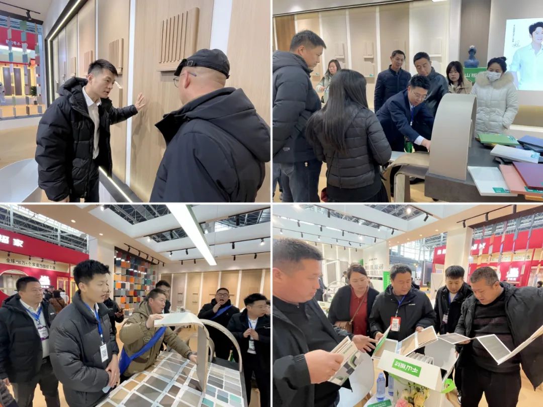 千山板材門墻柜系統(tǒng)涵蓋了同色板材、室內(nèi)門、圓弧、格柵、埡口、門套線、踢腳線,實現(xiàn)門墻柜全屋同色一體化定制,吸引了眾多觀展客戶咨詢、洽談。