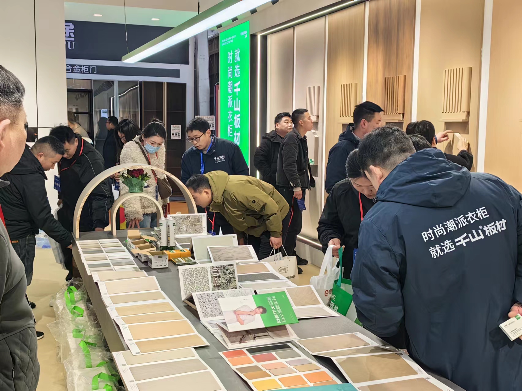 雖然現場咨詢客戶很多,但千山的小伙伴們一直以最飽滿的熱情和活力,貼心引導,為現場客戶答疑解惑,為千山板材展館增添了又一道人氣風景線。