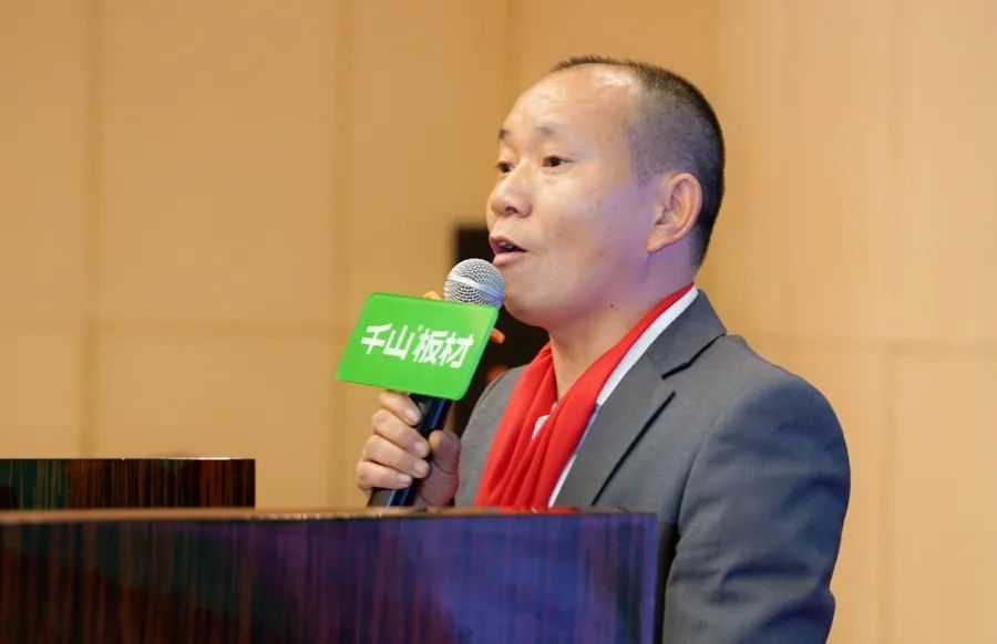 千山板材華南大區經理倪磊詳細闡述了千山2024年產品體系,涵蓋4大品類:大實木刨片板、小實木刨片板、多層板、實木板,全系列升級ENF級。