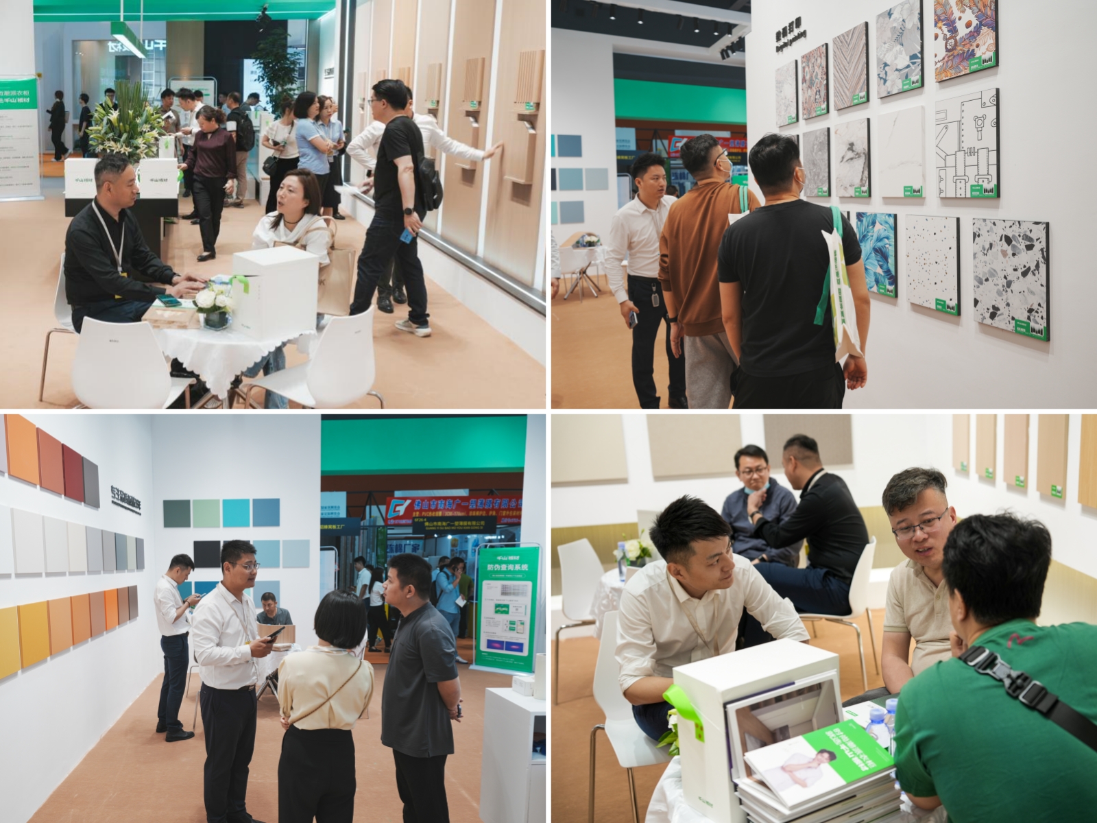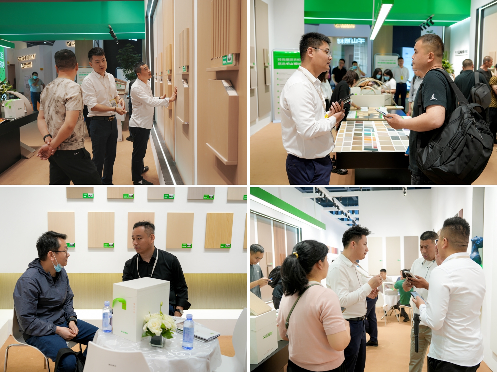 千山板材展位吸引了眾多觀展者前來參觀咨詢,多個亮點燃爆現(xiàn)場,開展首日便人氣“爆棚”,成為“熱門打卡點”。現(xiàn)場的小伙伴們專業(yè)、耐心、細致地為大家講解產品特點和產品優(yōu)勢。