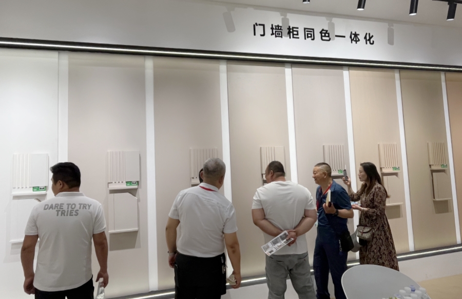 千山板材擁有的內(nèi)直外圓陽角、L型、U型(抽屜)、圓柱、門套9大規(guī)格圓弧產(chǎn)品,同步15款花色,充分滿足不同的應用場景,成為展會現(xiàn)場炙手可熱的門墻柜一體化產(chǎn)品。