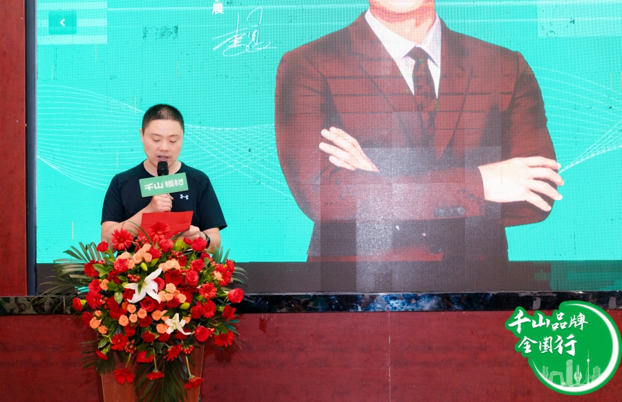 千山板材大區經理王殿忠致辭。王經理分享到,2024年,千山以強勁的市場響應速度,打造形成更完整的產品體系,并以“現貨庫存 1張起發”的現貨倉布局為經銷商及合作伙伴注入新的發展動能。