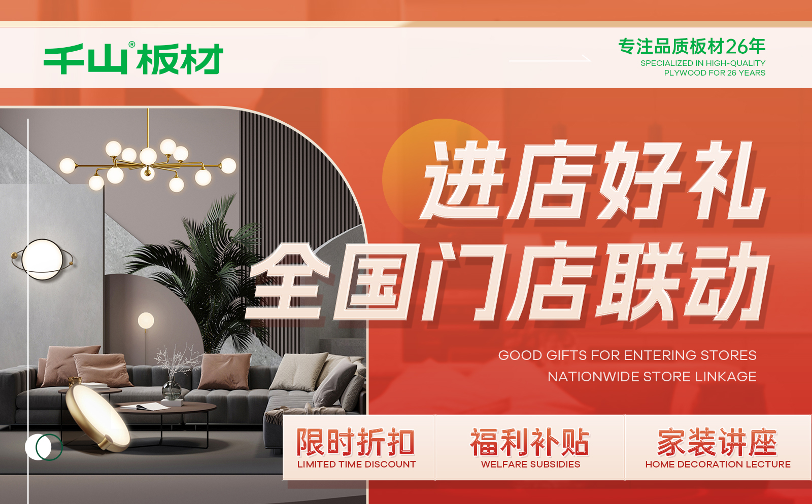 千山板材全國線下門店將為您提供卓越的支持和幫助,讓我們一起FUN心購!8月16日-9月16日,鎖定千山板材官方直播間,享多重家裝好禮!