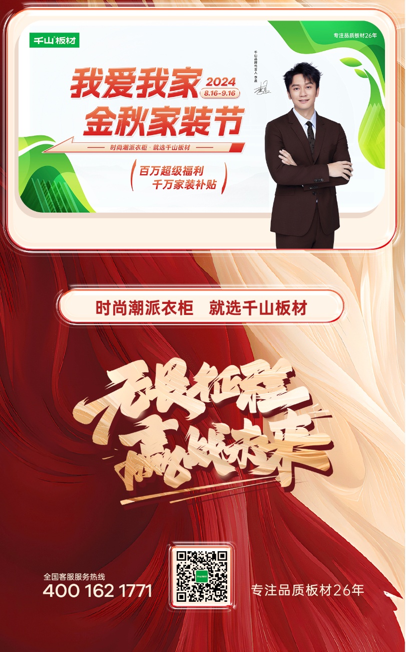 企業(yè)新聞8月16日,千山金秋家裝節(jié)火爆上線,截至9月16日,為期30天的家裝節(jié)活動(dòng)日前正式落下帷幕。活動(dòng)期間,千山板材全國(guó)1500+門(mén)店聯(lián)動(dòng),全網(wǎng)曝光量超8500萬(wàn)、線上直播觀看量超2000萬(wàn)、簽約數(shù)量達(dá)3500+,實(shí)現(xiàn)了品牌聲量和銷售業(yè)績(jī)的雙豐收!