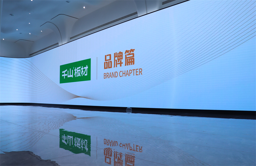 穿過(guò)正門大堂左側(cè),迎面而來(lái)的是千山集團(tuán)文化展示區(qū),更是集團(tuán)砥礪前行的生動(dòng)敘事。超大LED屏高3.8m、寬27m,是目前臨沂最大的LED屏幕。宣傳片《千山筑夢(mèng)》講述發(fā)展的故事,傳遞文化的自信,以集團(tuán)全產(chǎn)業(yè)鏈、品牌、產(chǎn)品三大板塊發(fā)展成果為引線,串聯(lián)起千山過(guò)去二十六年的風(fēng)雨輝煌路。
