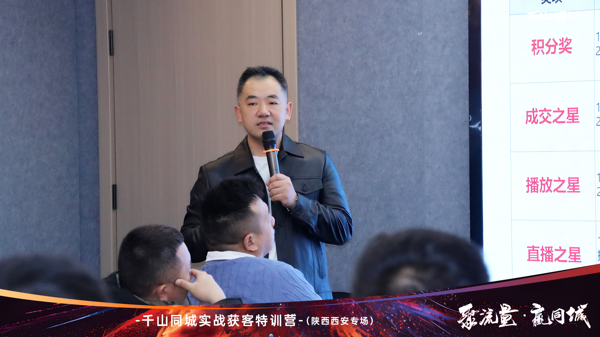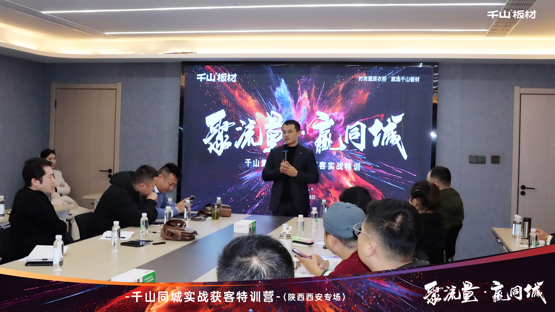 跟上新賽道風向,拓展流量致勝渠道。活動開始,千山板材陜西倉總經理王國棟致辭。王總表示:面對新媒體發展浪潮,我們要轉變營銷思維,積極布局抖音同城,打通線上的獲客轉化。