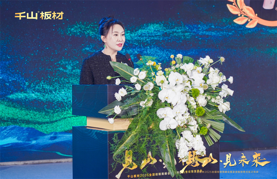 千山集團副董事長劉玉蓮發表致辭。劉董表示,2025年將是千山品牌的“進階之年”,將依托品牌力、產品力、營銷力、智造力四大綱領,持續優化產品與服務,與優質供應商、合作伙伴開展深度合作,以精準戰略、產品布局、精銳團隊三大攻堅力量共同決勝未來。