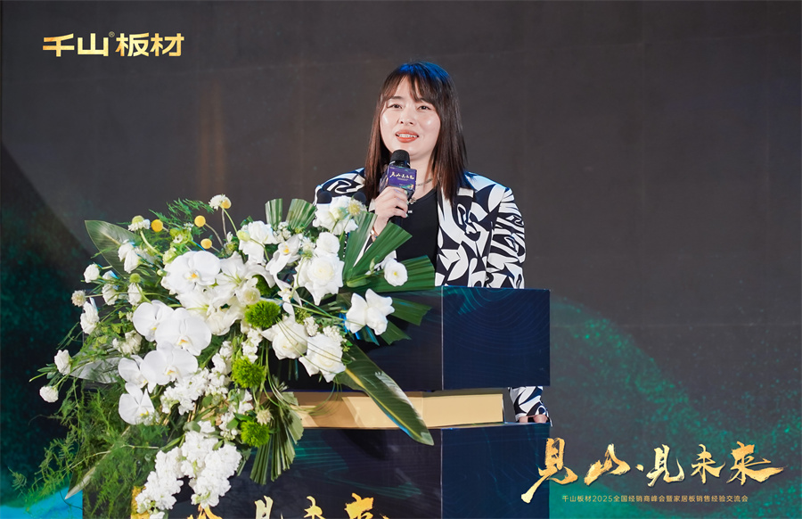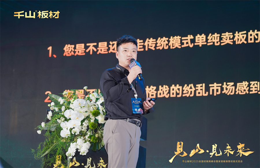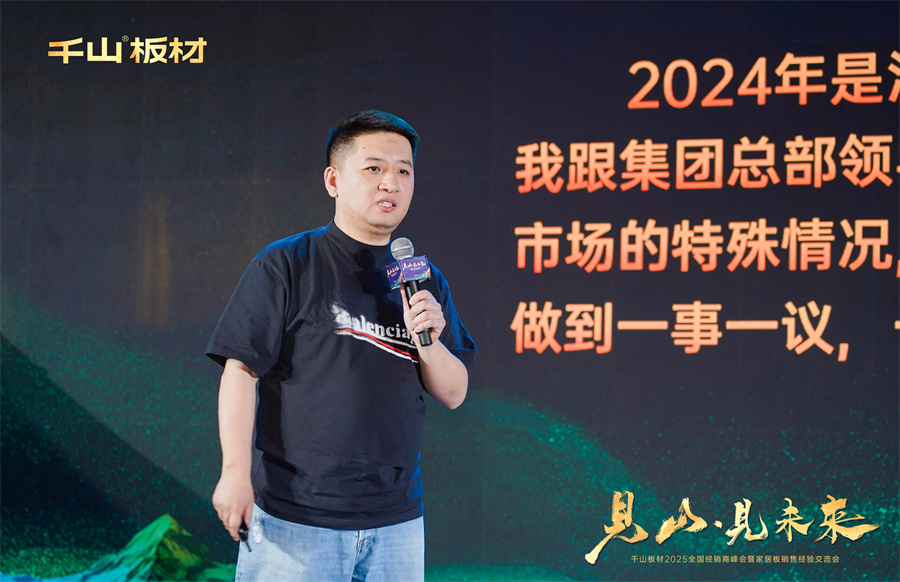 千山板材優秀大商代表袁琳、馬良臣、蘇東方、孫丁娟、周志軍從家具板精細化運營、創新模式、自媒體賦能等多個角度,向在場的經銷商家人們分享了寶貴的經營經驗,帶給大家新的行業啟發與思考,鼓勵經銷商家人們敢于超越自我,共同迎接市場機遇。