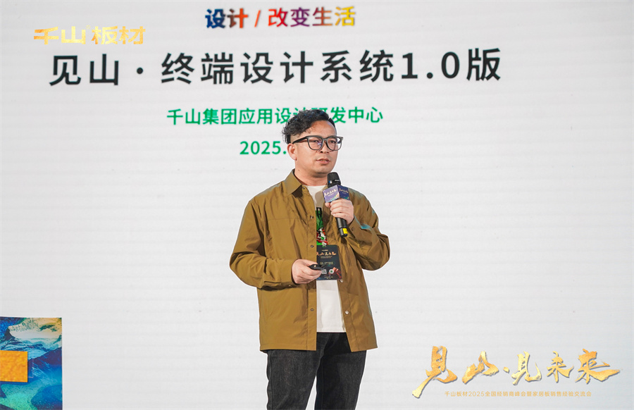 千山應用設計研發中心朱云周總監詳細闡述了“見山-終端設計系統1.0版”,基于風格邏輯、色彩邏輯、材質邏輯打通終端應用,確保落地場景的呈現效果,賦能終端來解決客戶需求的痛點問題,從而有效助力經銷商的運營發展。