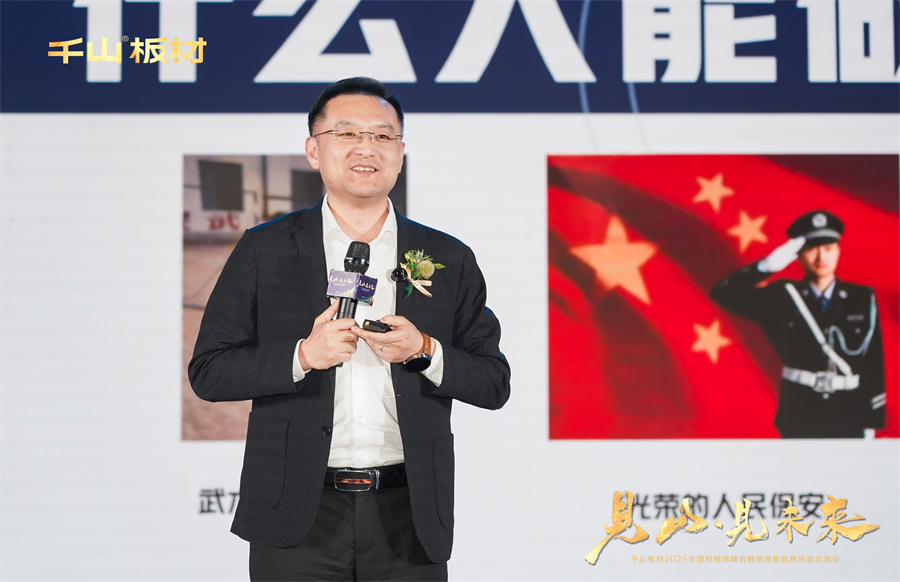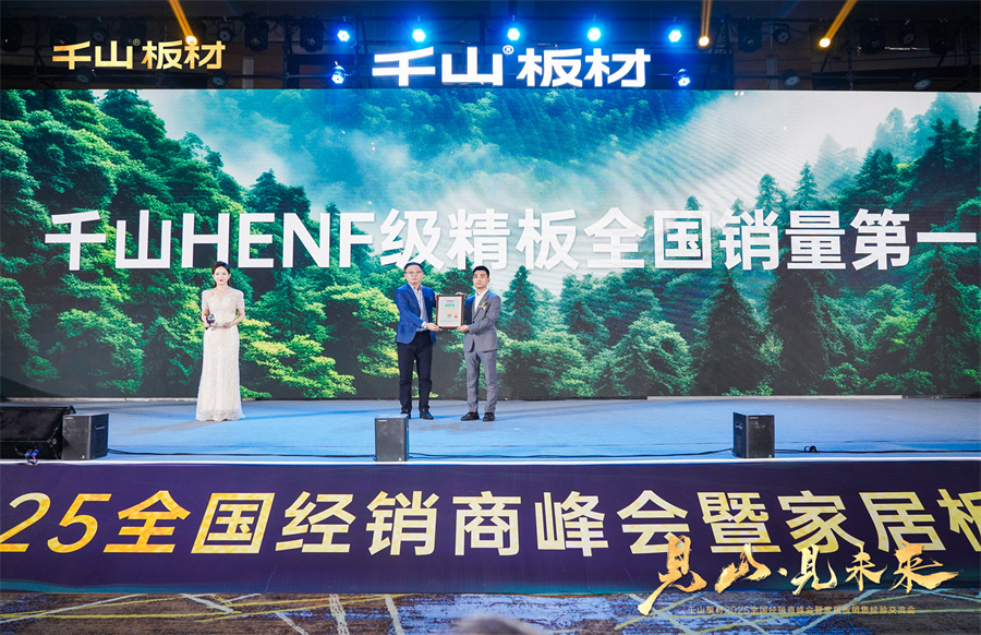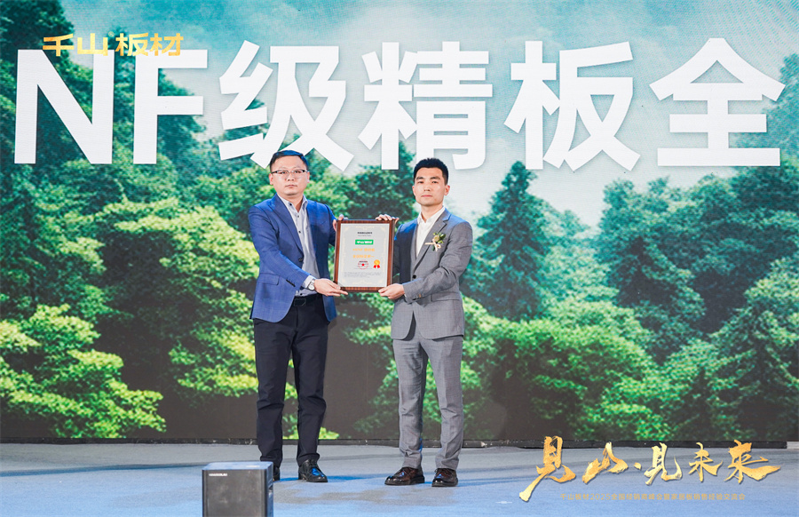 中國最具領導力和權威性的認證公司——尚普咨詢集團,其資深合伙人曹頡先生親臨峰會現場,為千山板材帶來極具分量的權威認證——千山板材HENF級精板全國銷量第一!這一榮譽不僅彰顯了千山板材在市場上的卓越表現,更激勵著千山繼續前行,勇攀高峰。