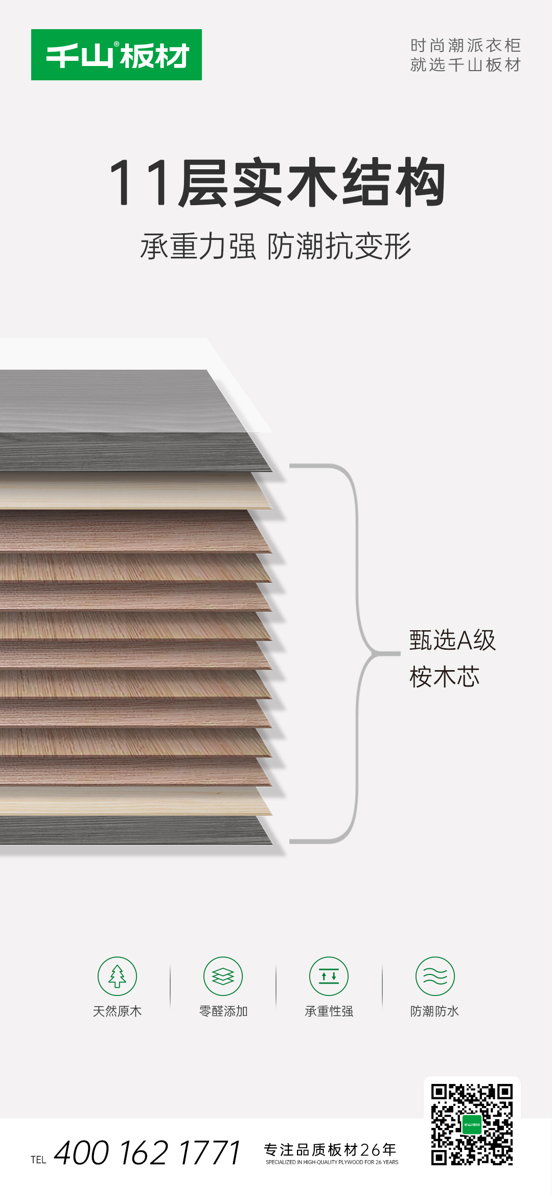 好的背板不但可以讓柜子更加穩(wěn)固,還可以起到防潮防霉的作用,所以背板的使用至關(guān)重要。千山板材實木多層背板配置4.6厘/5厘/7厘/9厘等多種規(guī)格,充分滿足多樣化的產(chǎn)品需求。