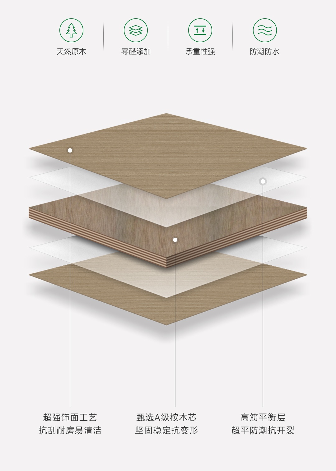千山阻燃家具板,具有專業防火阻燃性能,能夠抵御火災威脅,為我們的家居空間筑起一道安全防護墻。千山阻燃家具板,層層夾芯阻燃劑高壓浸泡長達4小時,木纖維完全滲透,不僅提高了阻燃劑在木材中的穩定性,還使得阻燃效果更加持久和可靠,在火災發生時能夠有效地阻止火勢的蔓延。根據GB8624-2012《建筑材料及制品燃燒性能分級》,建筑材料及制品燃燒性能分為A、B1、B2和B3四個等級。通過國家防火建筑材料質量監督檢驗中心檢測,燃燒性能達到GB8624-2012 規定的難燃B1級,且符合GB20286-2006 公共場所阻燃制品要求,獲得《燃燒性能標識授權書》認證。千山阻燃家具板甄選優質原木,確保成品板材的密度均勻,硬度更高,握釘力更強。內芯11層結構,加厚單板縱橫交錯鋪裝,保證板材的穩定性能,膠合強度更高,使板材的抗壓性、承重力更為出色。優質基材經過全周期養生、篩選、烘干、熱壓、砂光等24道標準工藝,并通過吸水膨脹率、耐濕、內結合強度等多項專業檢測,防潮抗變形,品質更出眾。