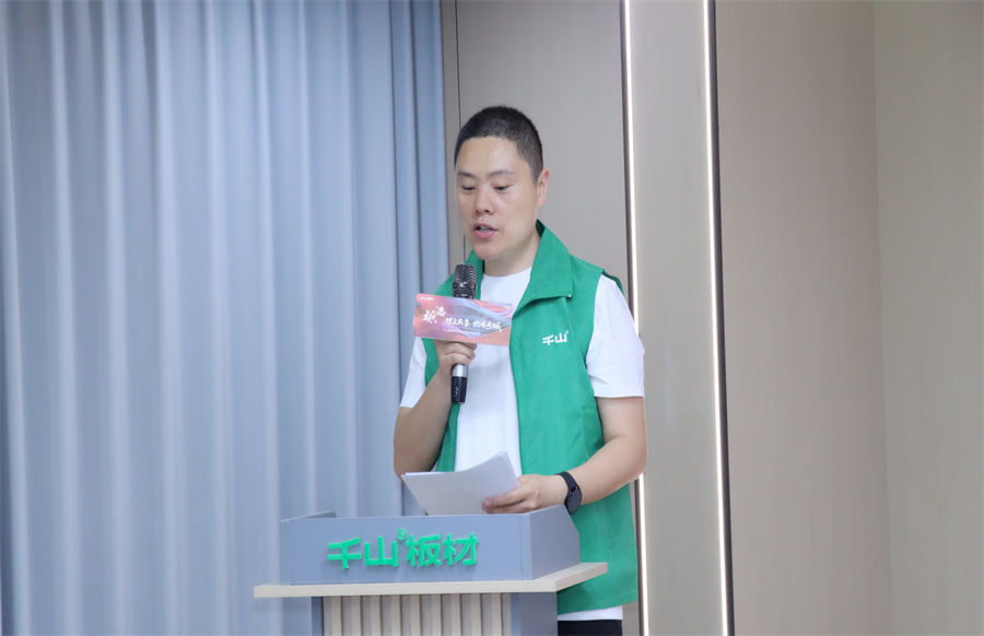 終端賦能不是選擇題,而是關乎生存的必答題!千山板材華中大區經理王殿忠致辭。王總表示,面對數字化變革浪潮,千山果斷提出“雙線融合、雙核驅動”戰略:線上構建營銷矩陣,線下打造終端門店體驗場景,而抖音同城和直播正是貫穿線上的流量支點,千山終端賦能特訓將引導助力經銷商伙伴撬動業績轉化增長。